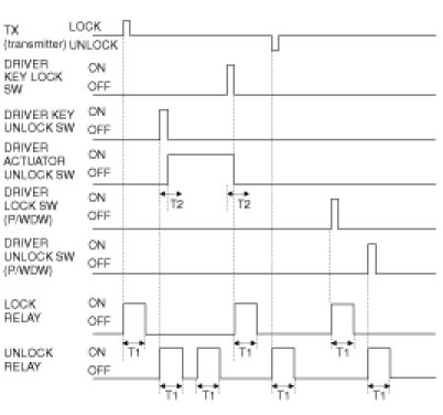 (3) When the TX (Transmitter) LOCK signal is received, all DOOR LOCK output shall be ON for T1.
