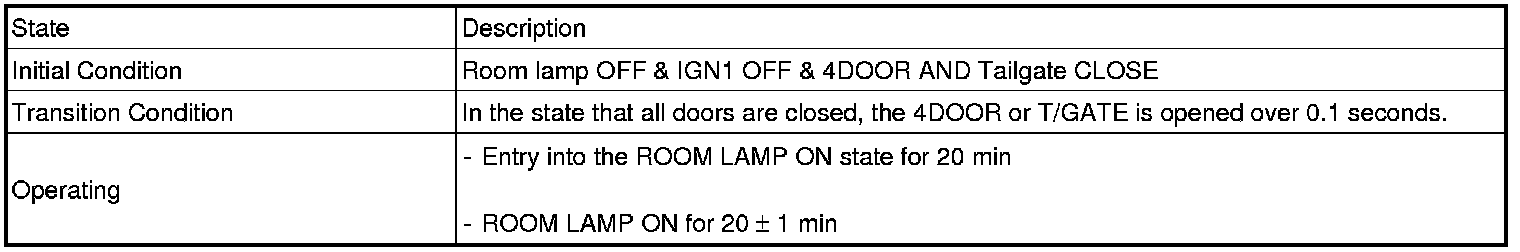 Also, in the state that the KEY IN SW is ON, after the driver's door is opened, if the KEY IN SW is OFF, then the Tail Lamp shall be OFF automatically.