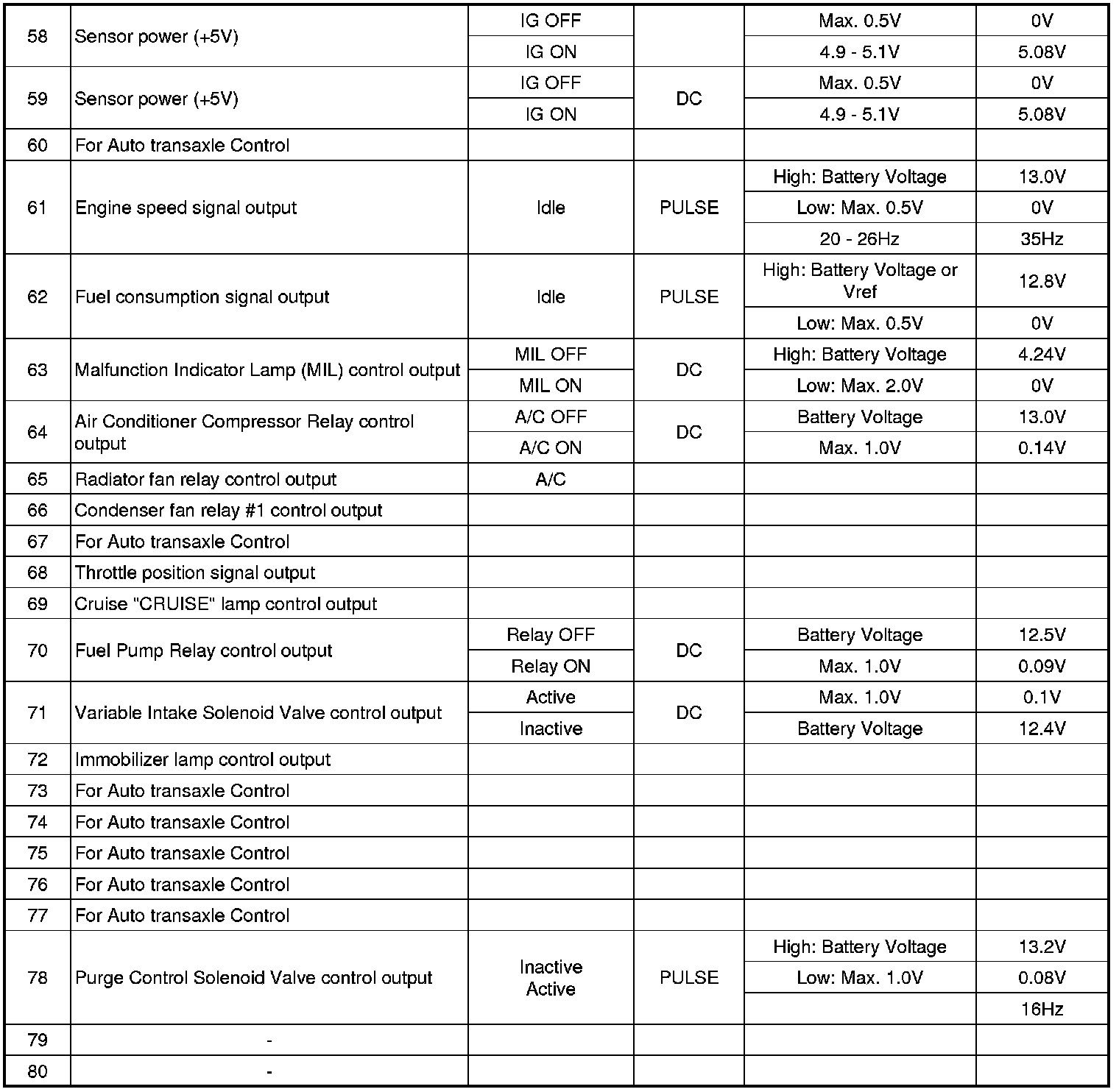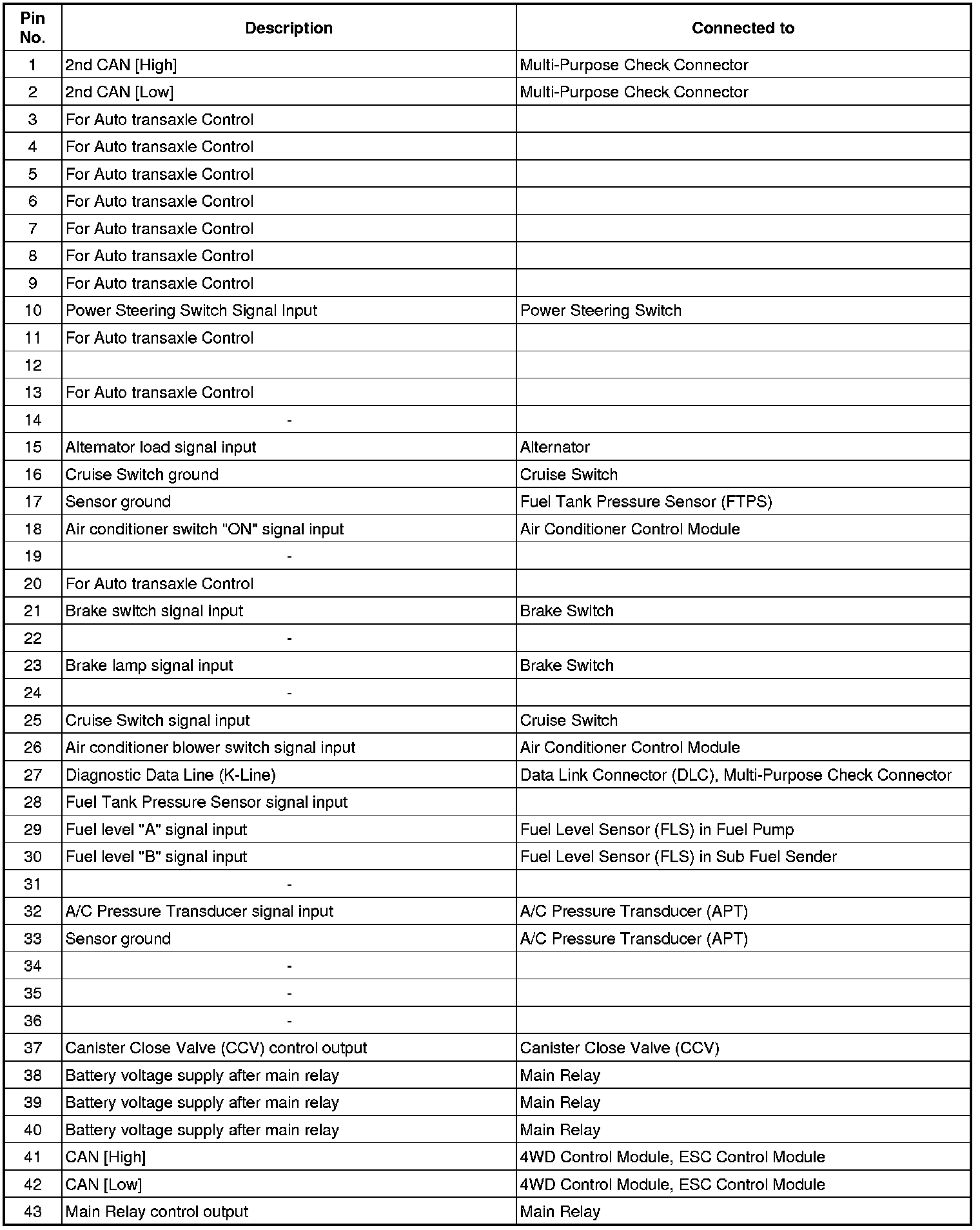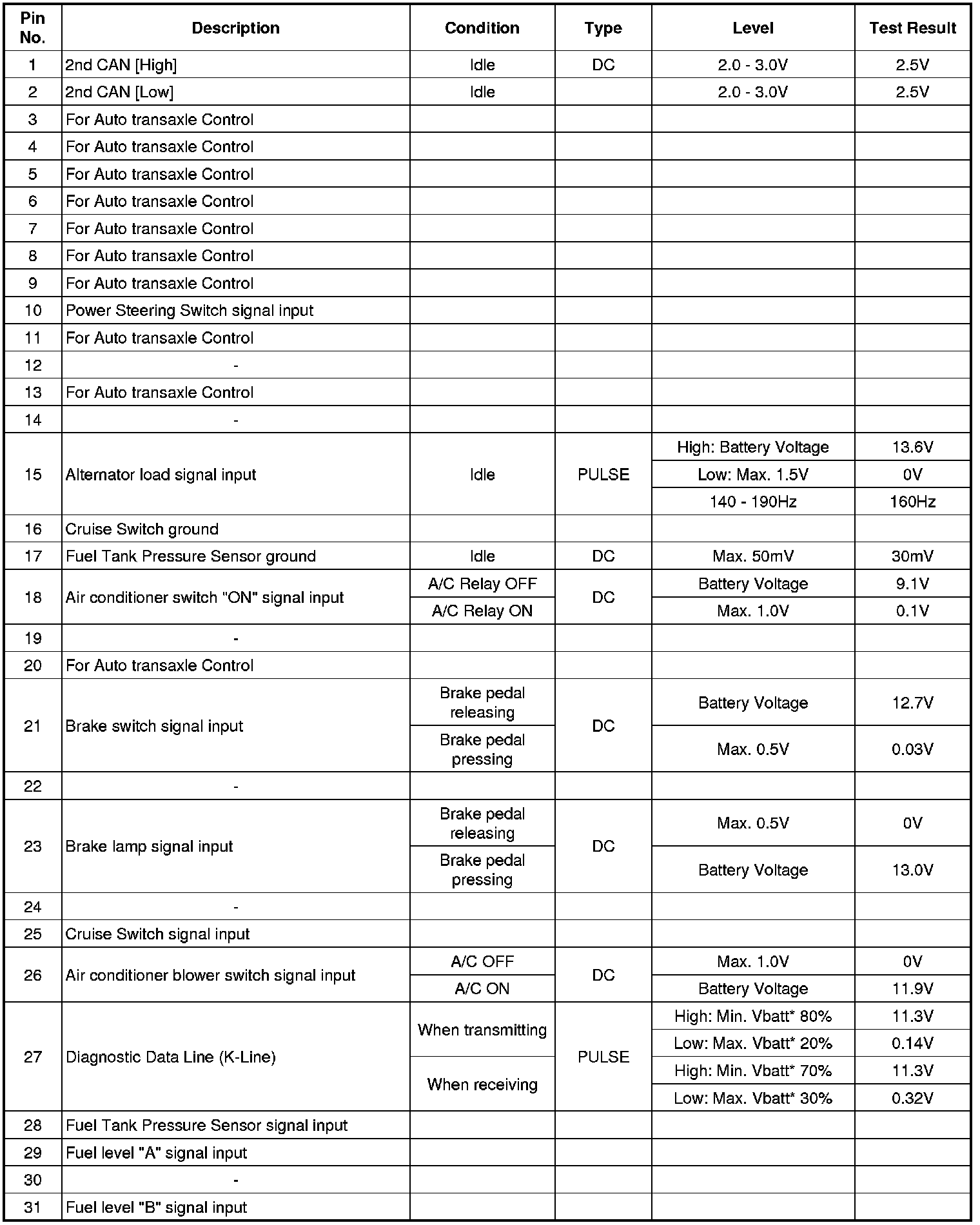 PCM Terminal Input/output Signal