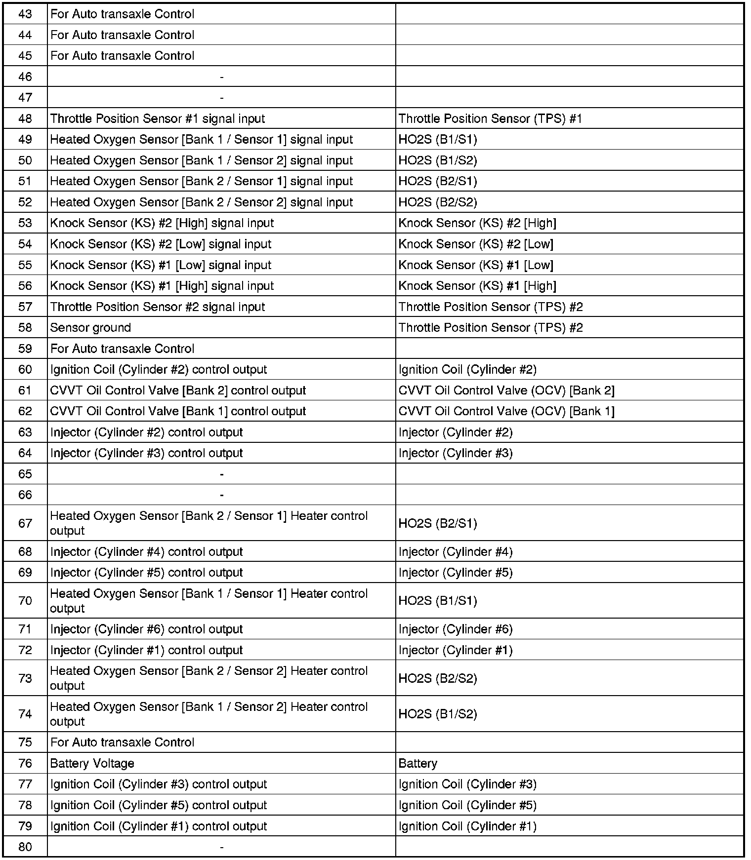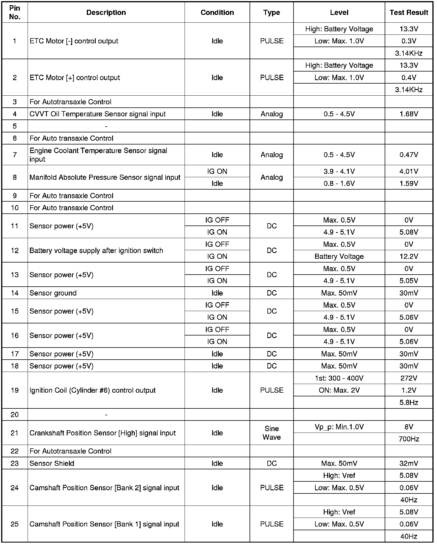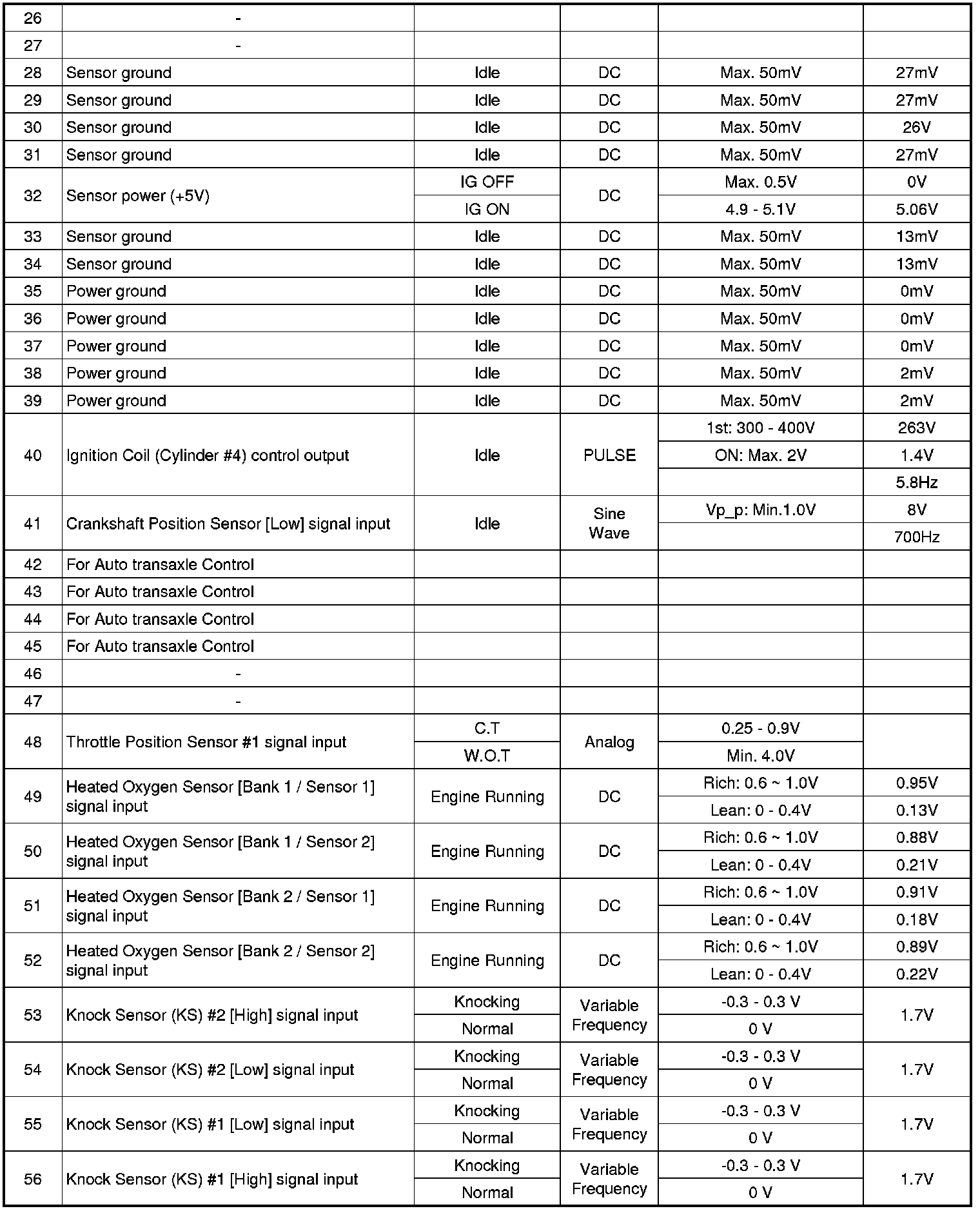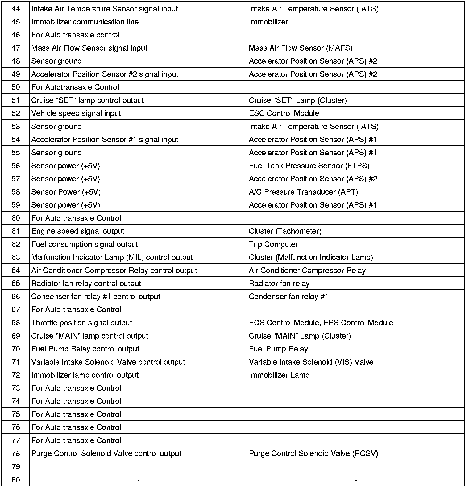PCM Terminal Input/output Signal