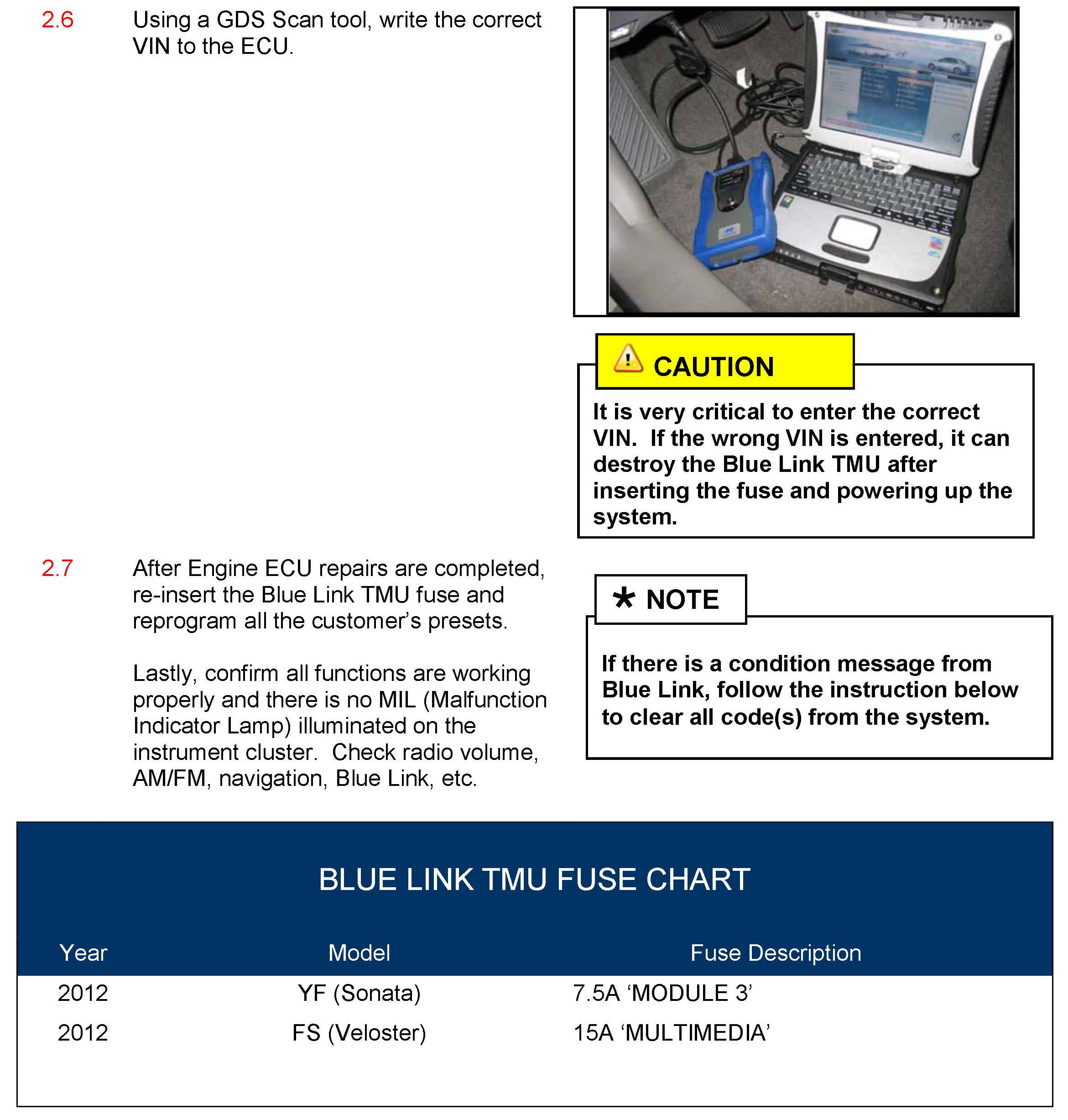 This bulletin describes the following procedure for vehicles equipped with Blue Link: