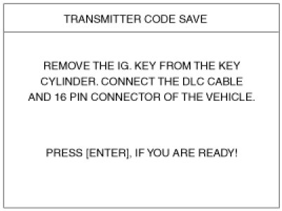 4. After removing the ignition key from key cylinder, push "ENTER" key to proceed to the next mode for code saving.