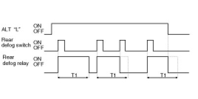 (2) REAR DEFOG RELAY is turned OFF if REAR DEFOG switch is turned ON again under output ON or ALT"L" = OFF.