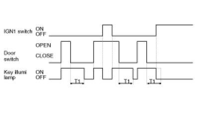 (3) KEY ILLUMI LAMP is immediately turned OFF at IGN1 switch = ON during output.