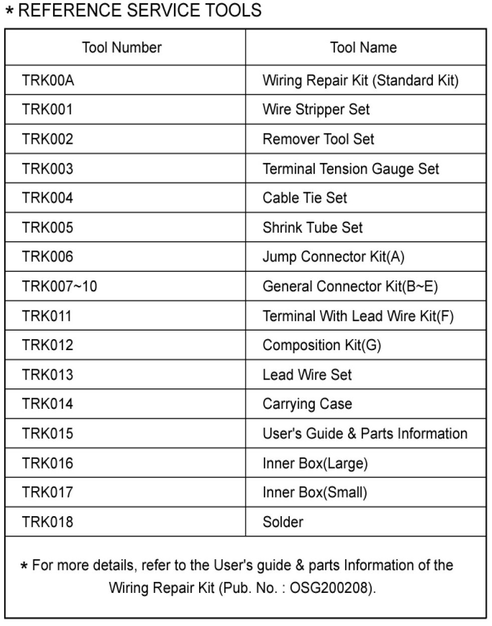 WIRING REPAIRREFERENCE SERVICE TOOLS