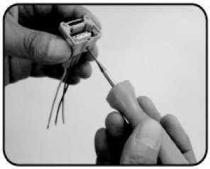 - Double tip type : Removal of double locking male/female terminal from the connector