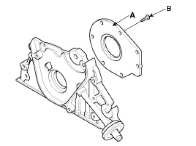 (2) Install the oil pump cover(A) to front case with the 7 screws(B).