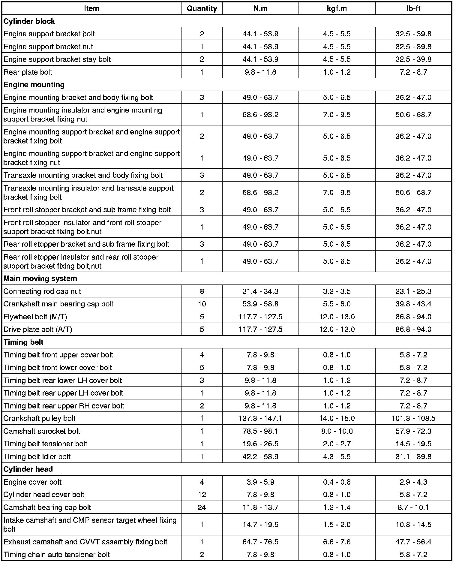 Tightening Torques