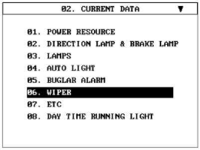 3. Select "Current data", if you will check current data of BCM. It provides power supply status, multi function status, lamp status, door status, lock system status, wiper, auto light status and so on.