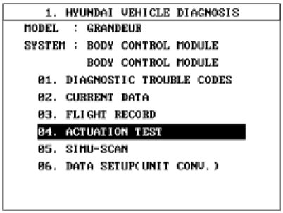 4. If you will check BCM data operation forcefully, select "Actuation test".