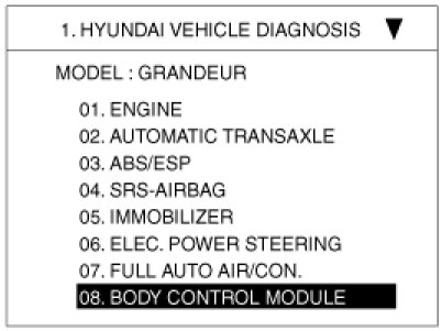 2. Select option "BODY CONTROL MODULE" and press ENTER.
