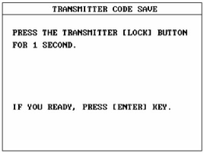 4. After removing the ignition key from key cylinder, push "ENTER" key to proceed to the next mode for code saving. Follow steps 1 to 4 and then code saving is completed.