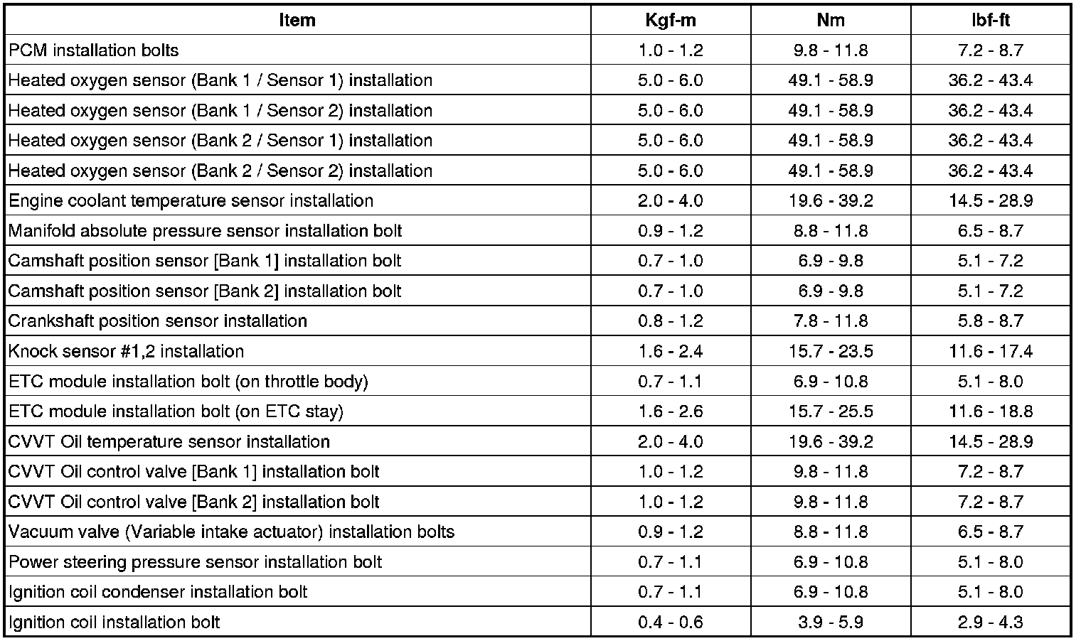 Tightening Torques