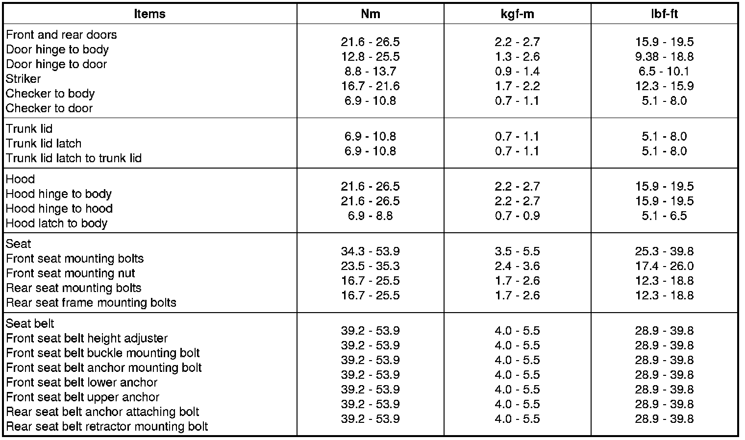 Tightening Torques
