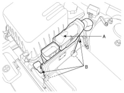 4. Unscrew the ECM mounting bolts (B) and remove the ECM from the air cleaner assembly.