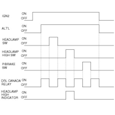If the IGN2 is ALT "L" are On, supply the power to the HEAD LAMP HIGH LAMP by turning the DRL CANADA RELAY ON.