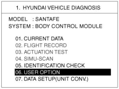 The BCM offers 3 items user option mode for a user convenience (AUTO DOOR LOCK, ARM/DISARM BY KEY, HORN ANSWER BACK)