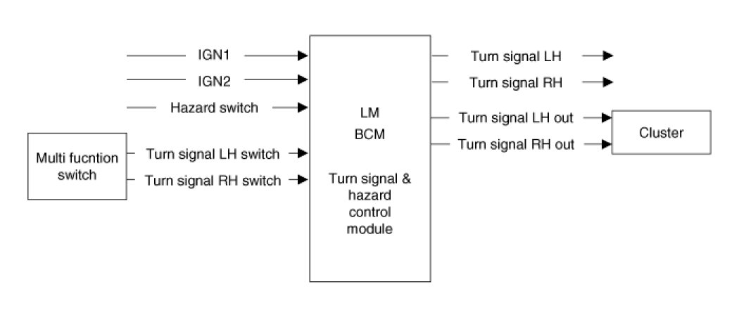 - During the Lane Change mode operation, if the user moves the turn switch in the other direction, then Lane change mode is finished and the other direction's flashing (Normal or Lane change flashing) will start depending on the switch detection time.