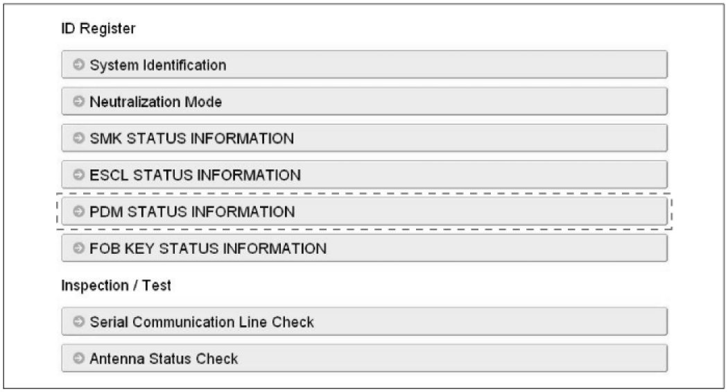 2. After IG ON, select the "PDM STATUS INFO".