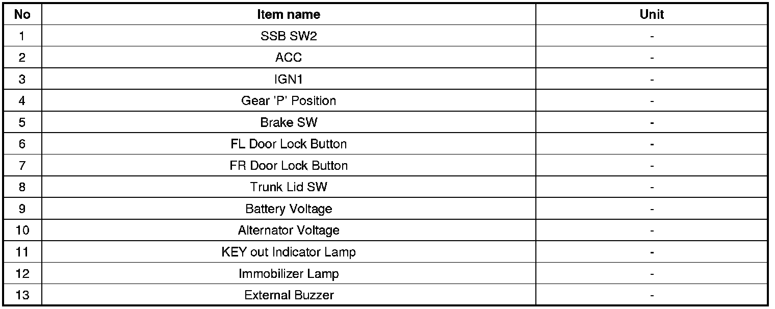 1. SMART KEY unit Input problem : switch diagnosis