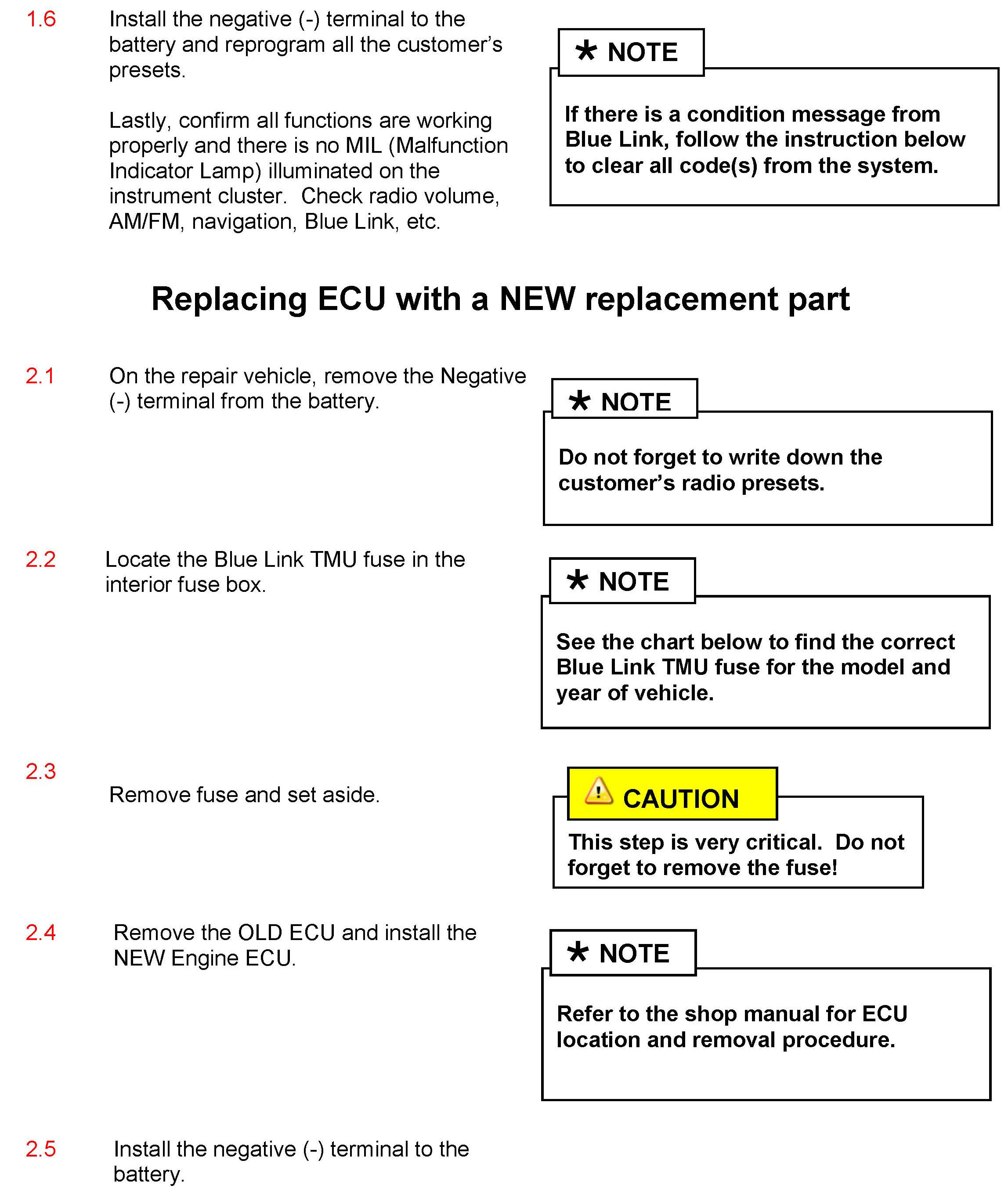 This bulletin describes the following procedure for vehicles equipped with Blue Link: