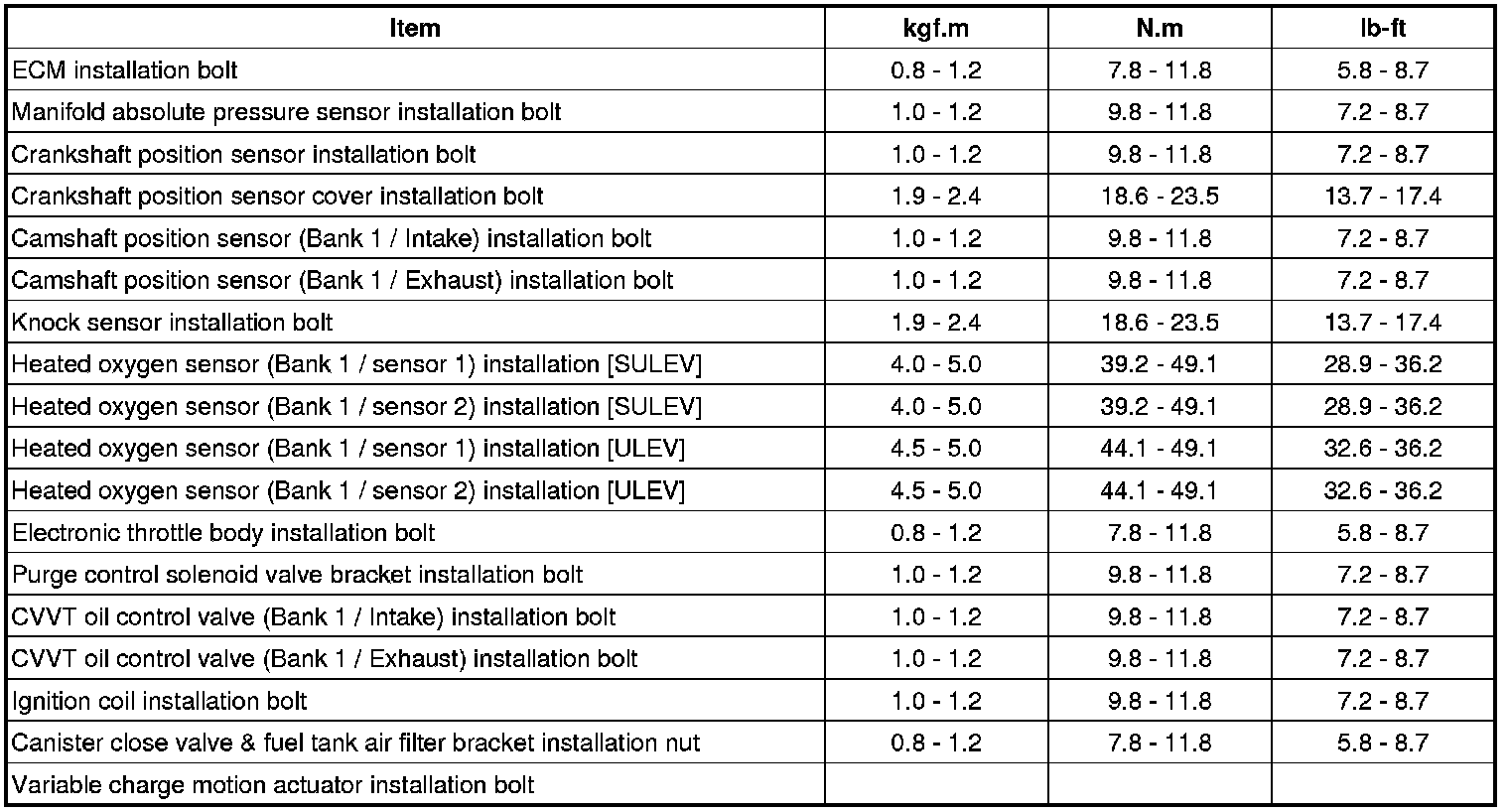 Tightening Torques