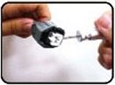 2. Insert each wire into the opposite ends of the in-line solder and crimp using a wire stripper.