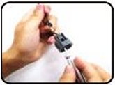 - Flat tip type : Removal of single locking male/female terminal from the connector