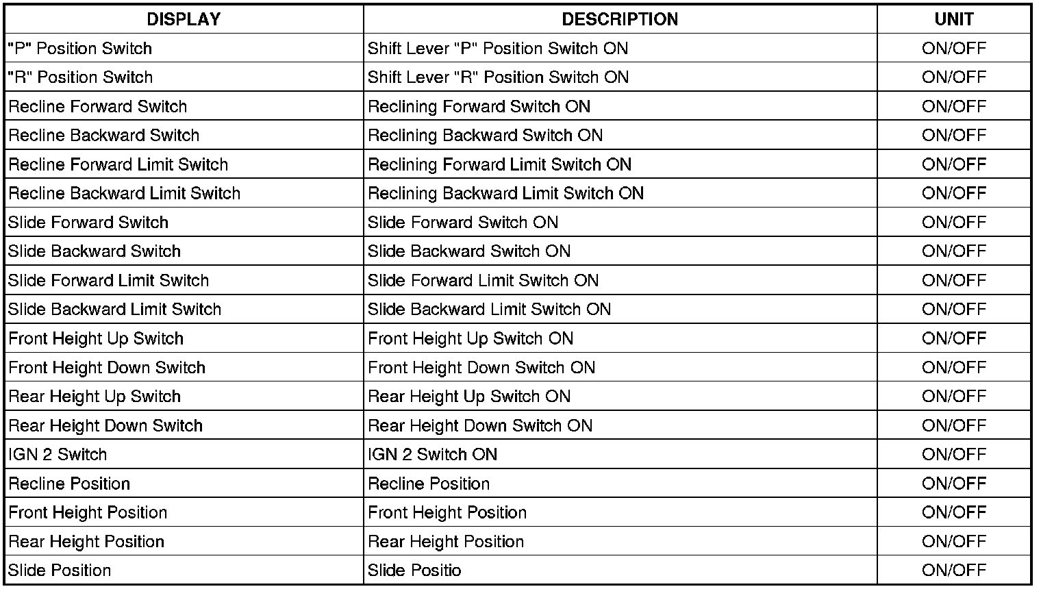 A. Seat installation state ON/OFF