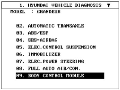 2. Select option "BODY CONTROL MODULE" and press ENTER.