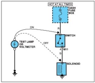 Use a test lamp or a voltmeter on circuits without solid-state units and use a test lamp to check for voltage. A test lamp is made up of a 12-volt light bulb with a pair of leads attached. After grounding one lead, touch the other lead to various points along the circuit where voltage should be present.