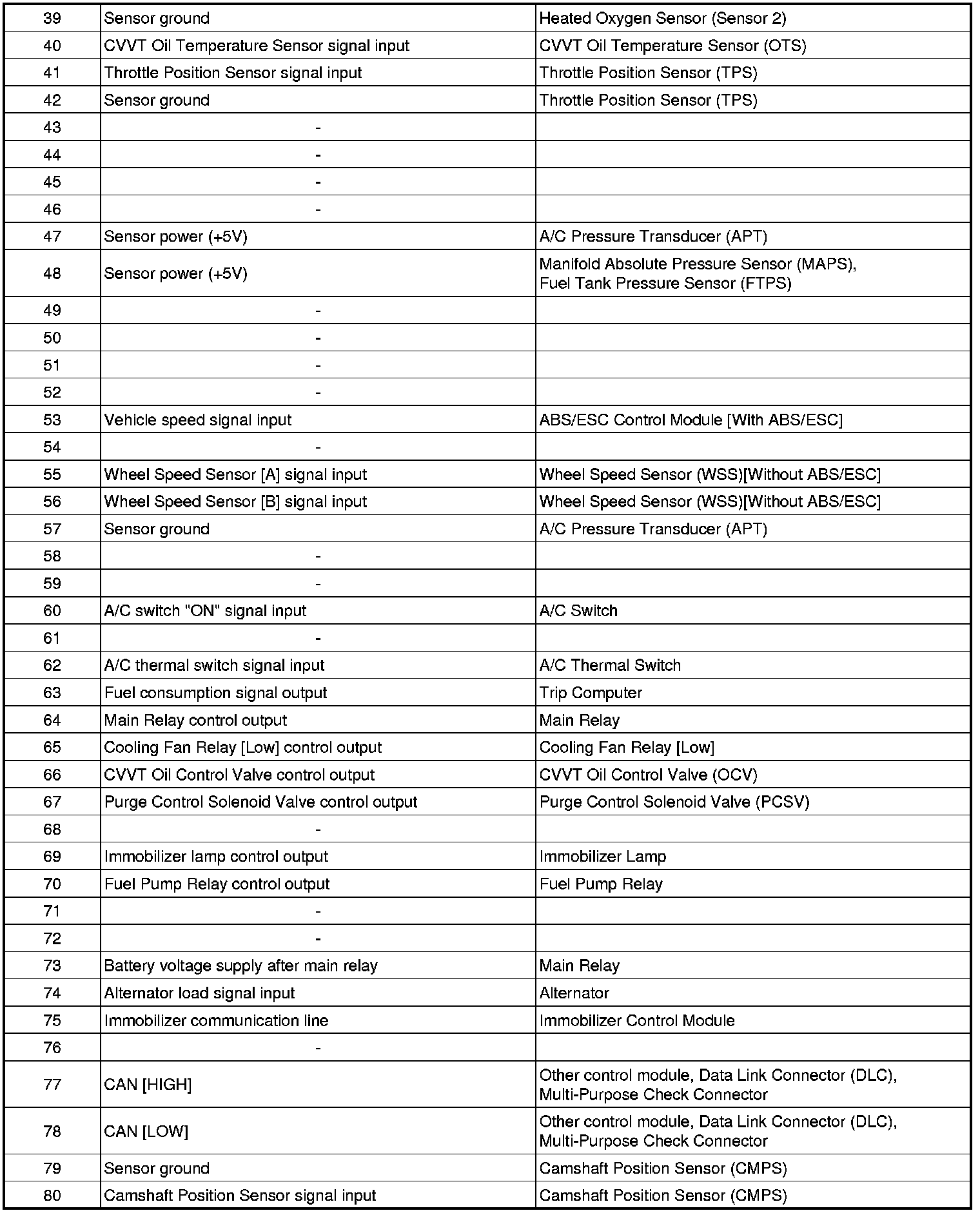 ECM Terminal Input/Output Signal