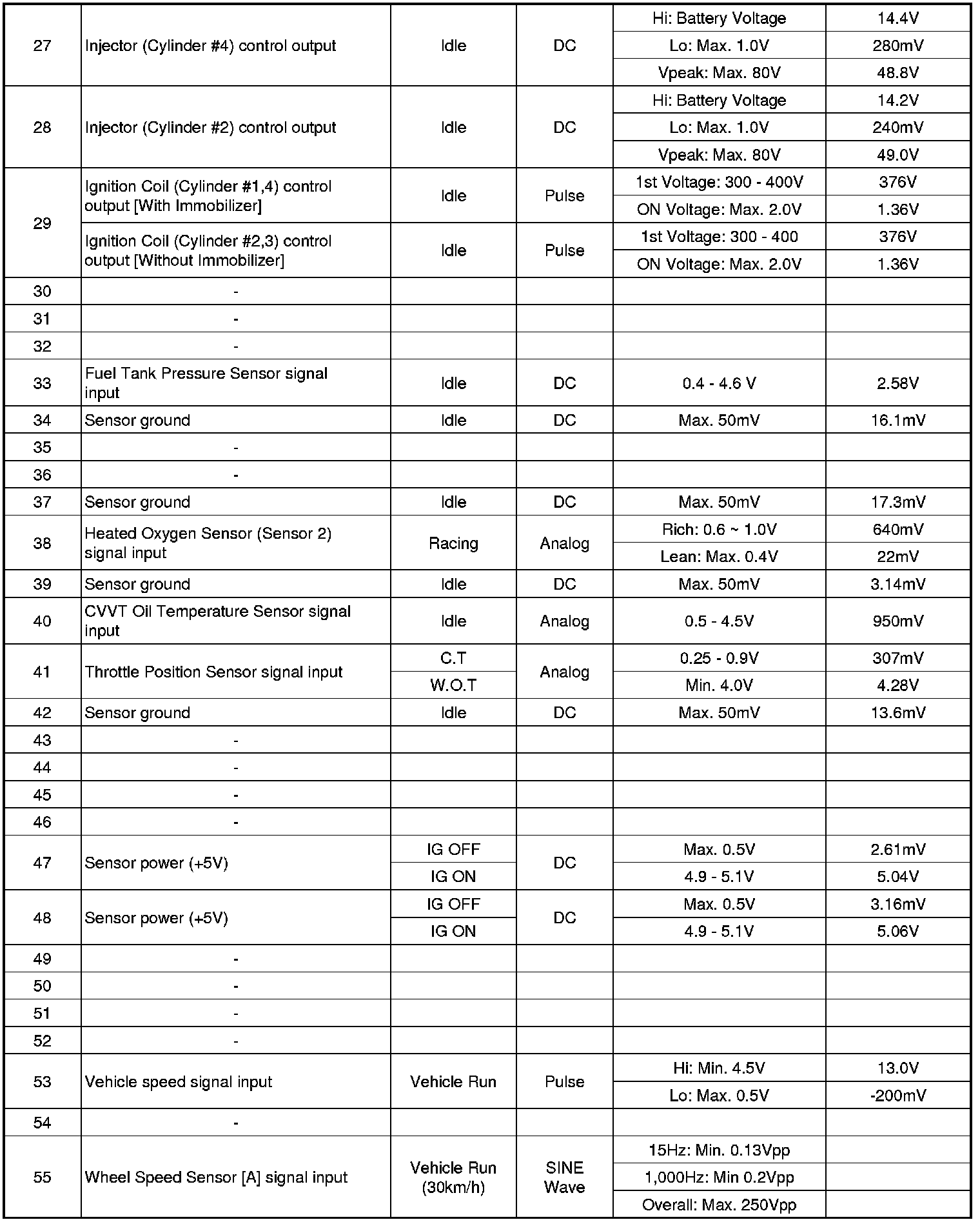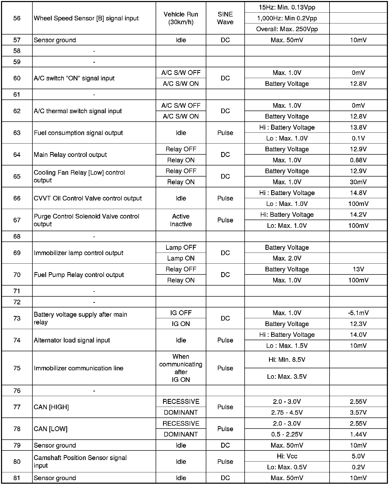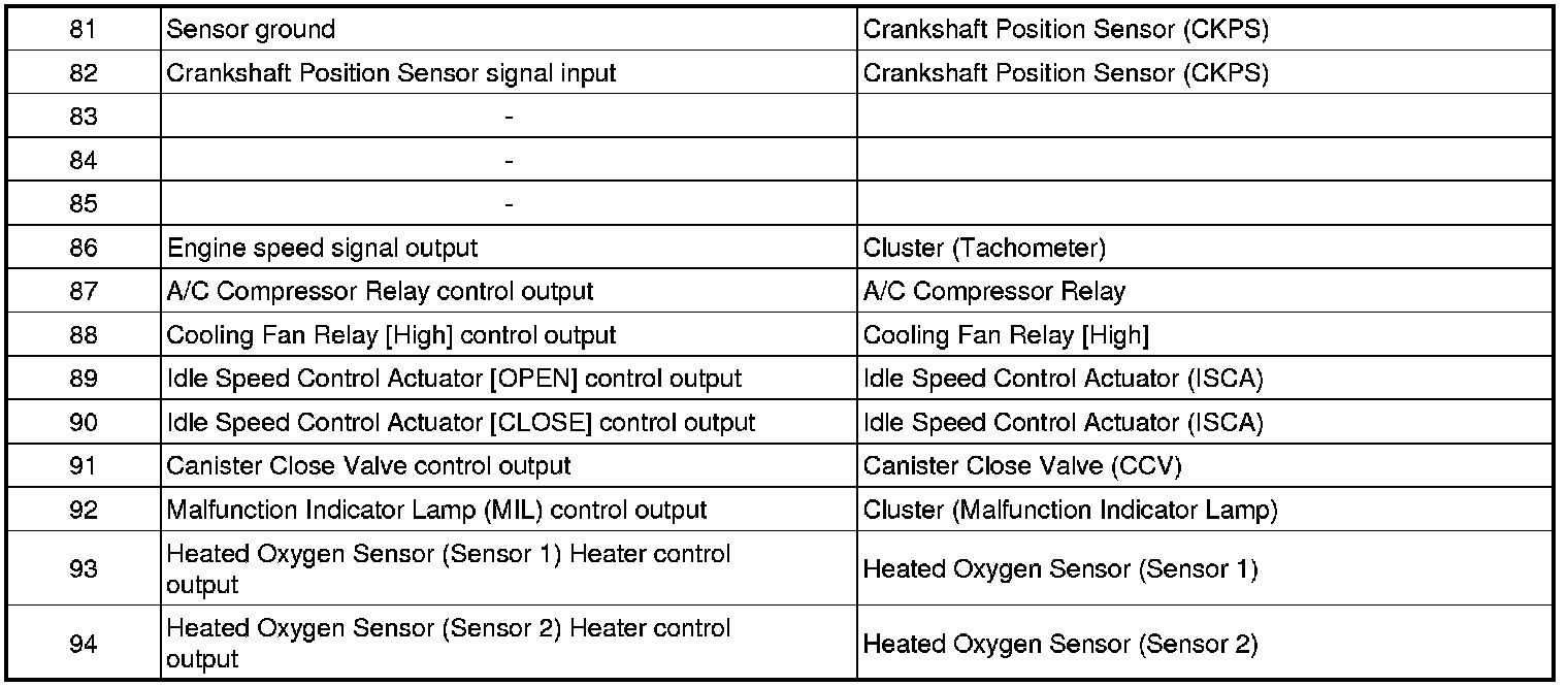 ECM Terminal And Input/Output signal