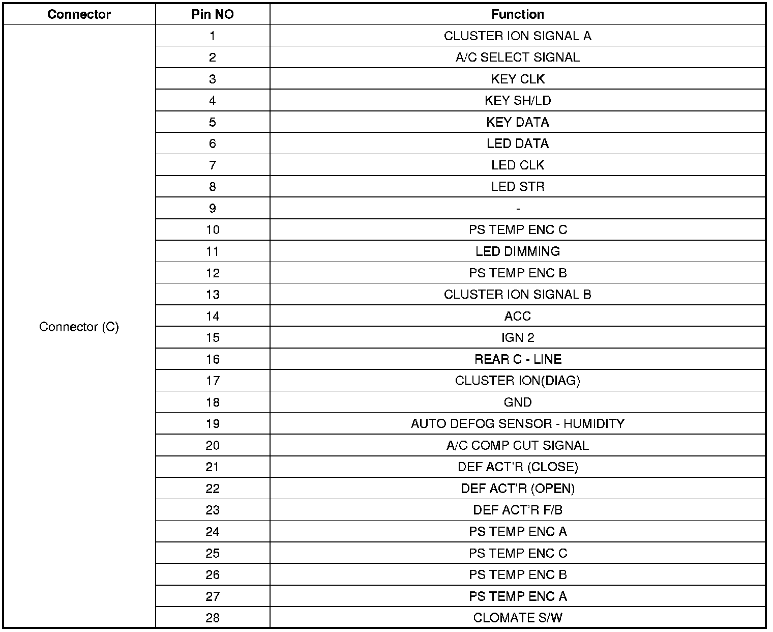 Connector Pin Function