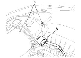 2. Disconnect the mass air flow sensor connector (A) and remove the installation bolt (B).