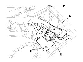 4. Remove the ECM & TCM bracket installation bolts (C) and nut (D).