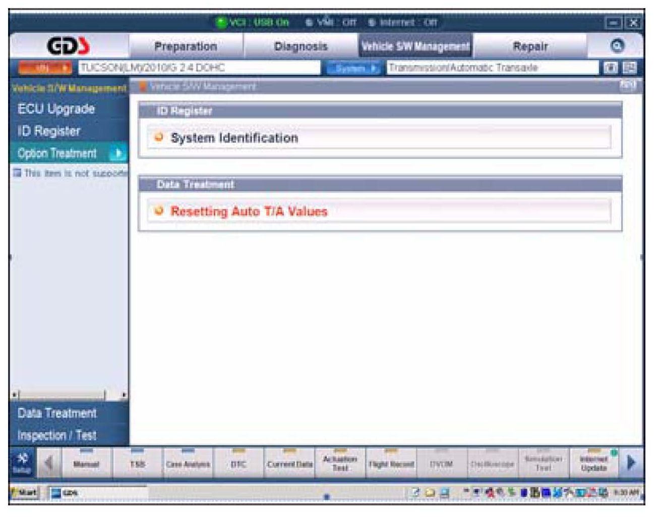 4. Attach a GDS and select VIN and A/T