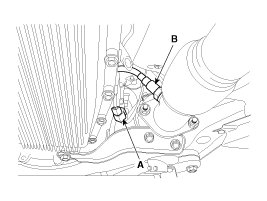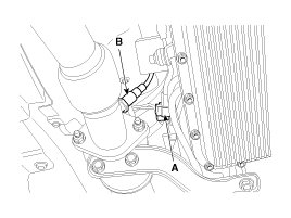 4. Remove the heater protector (B) from the catalytic converter after removing the bolt (A).