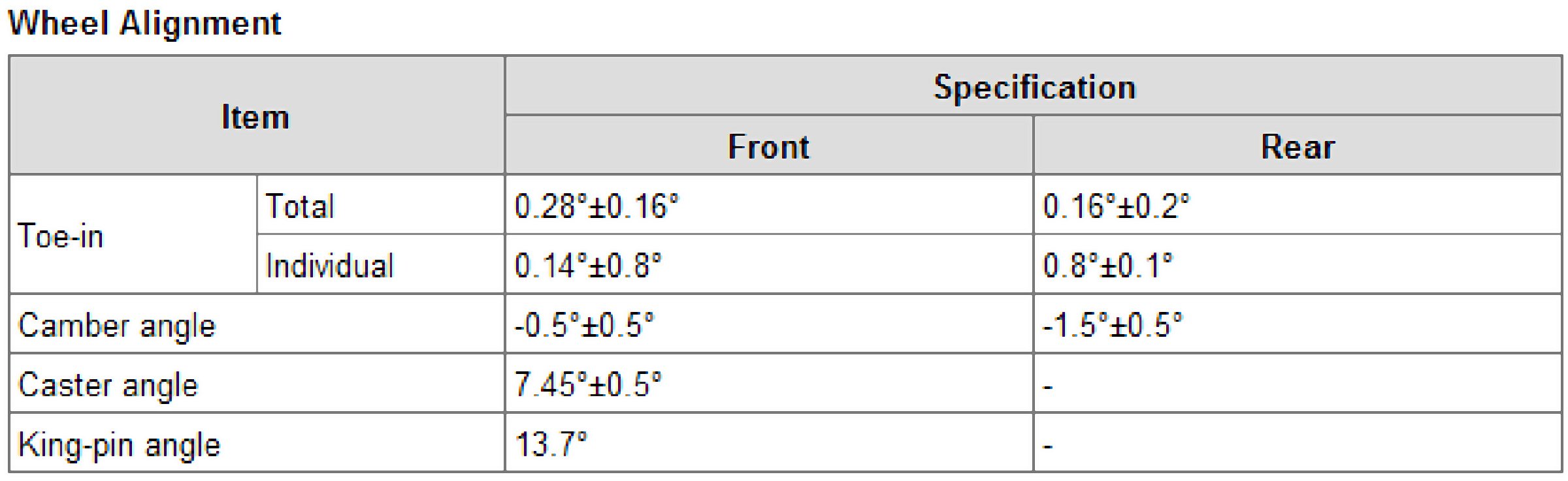 Wheel Alignment Specifications