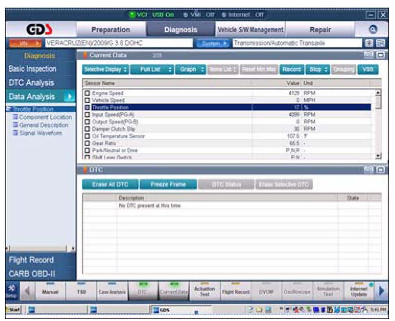 4. Attach a GDS and select VIN and A/T