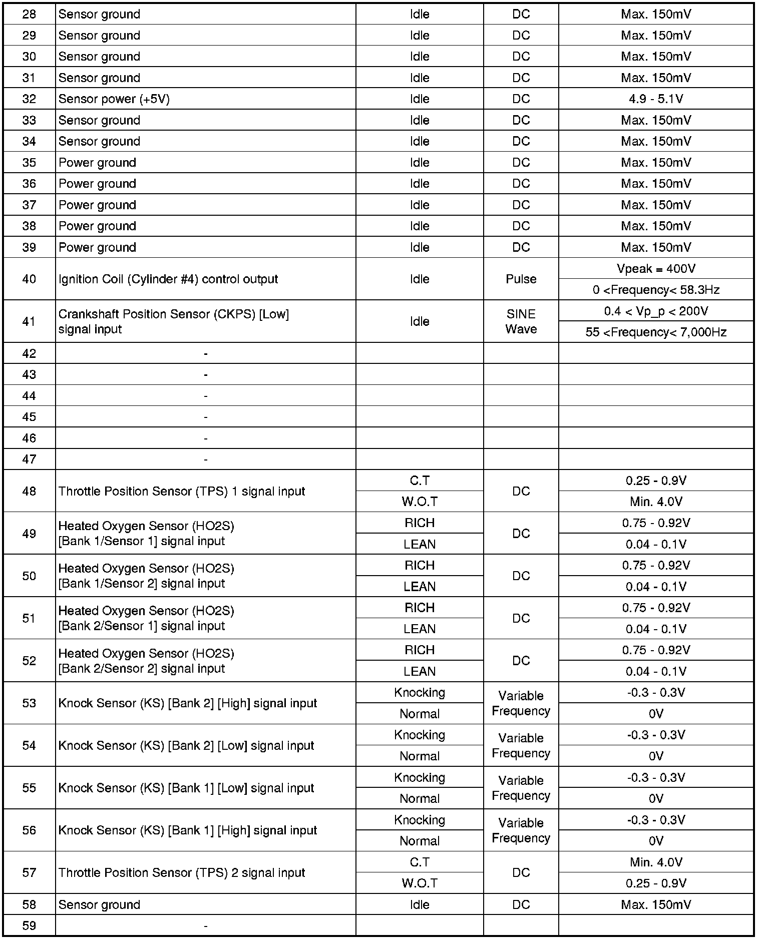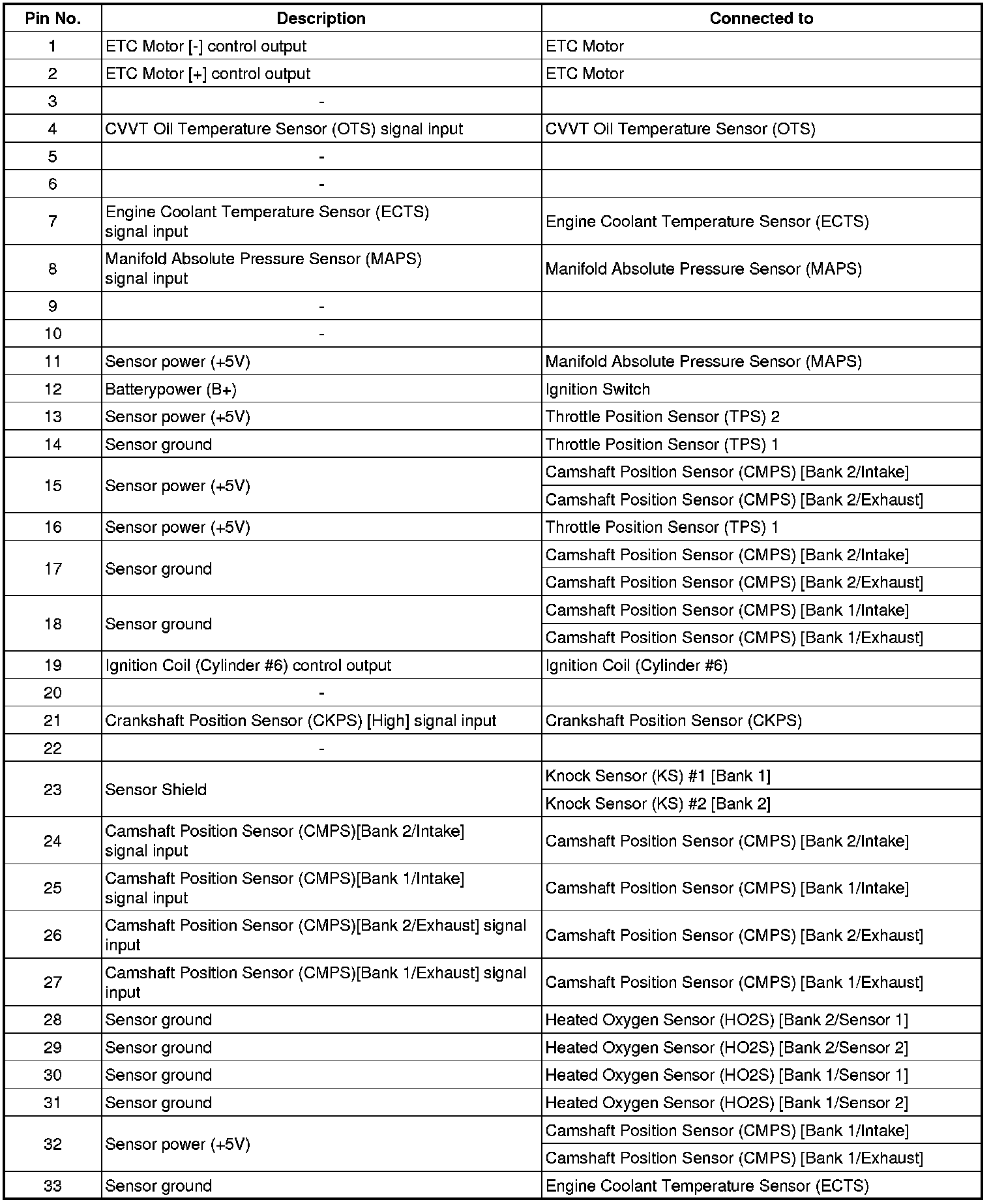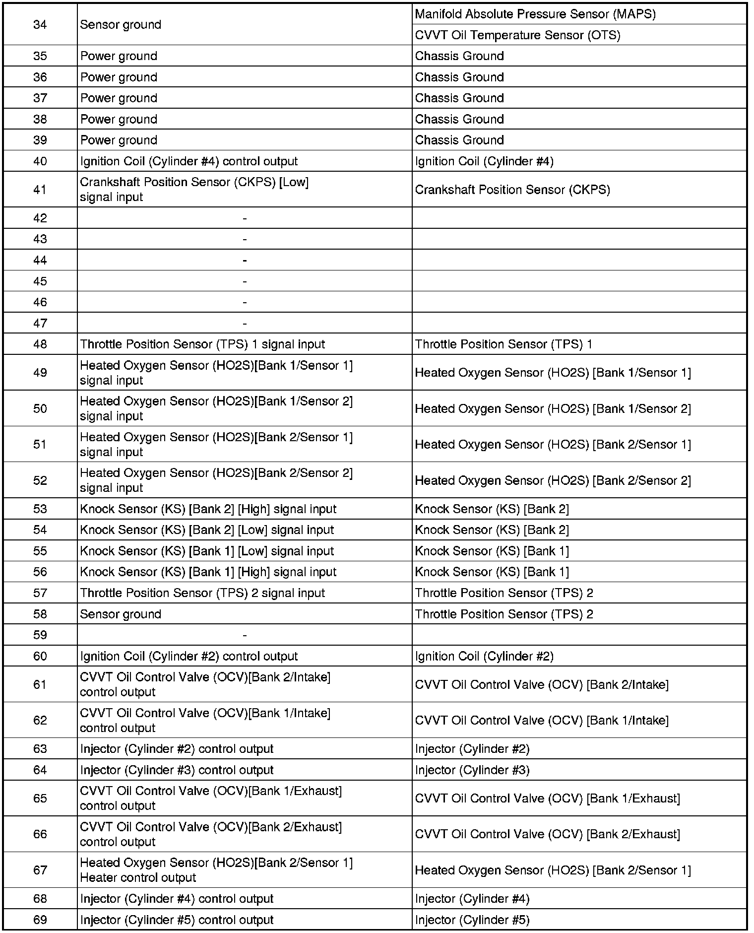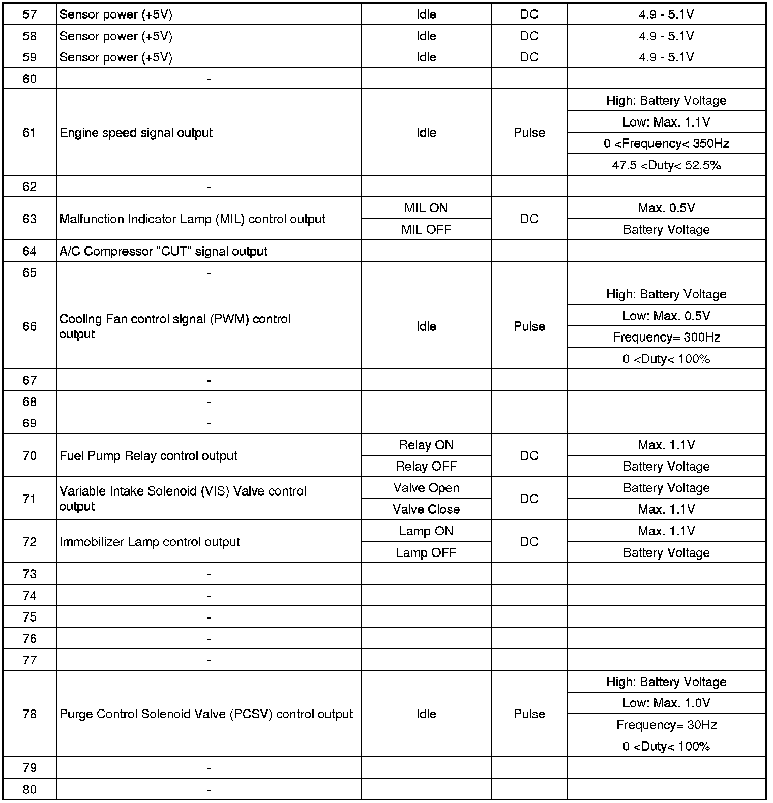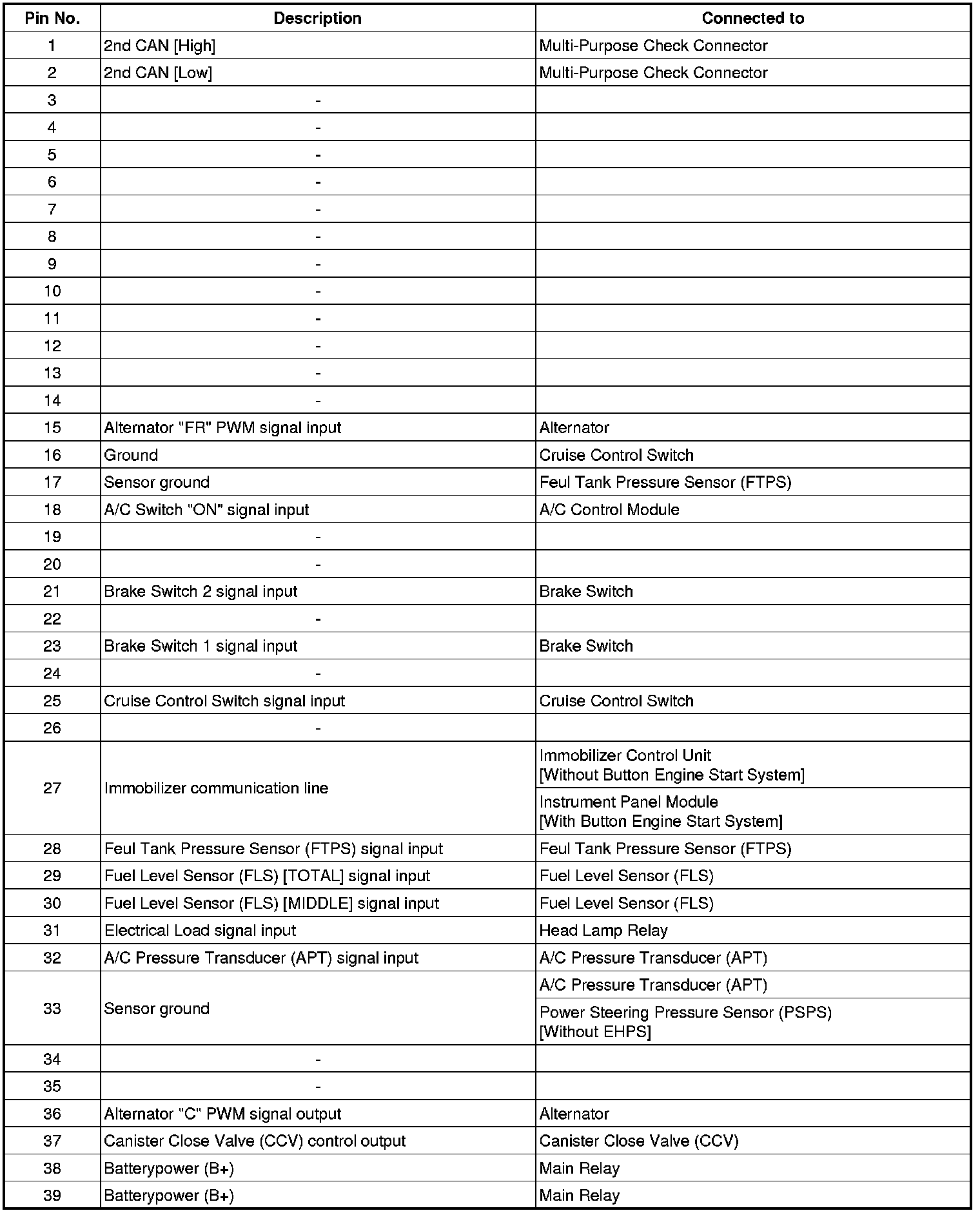 ECM Terminal And Input/Output signal