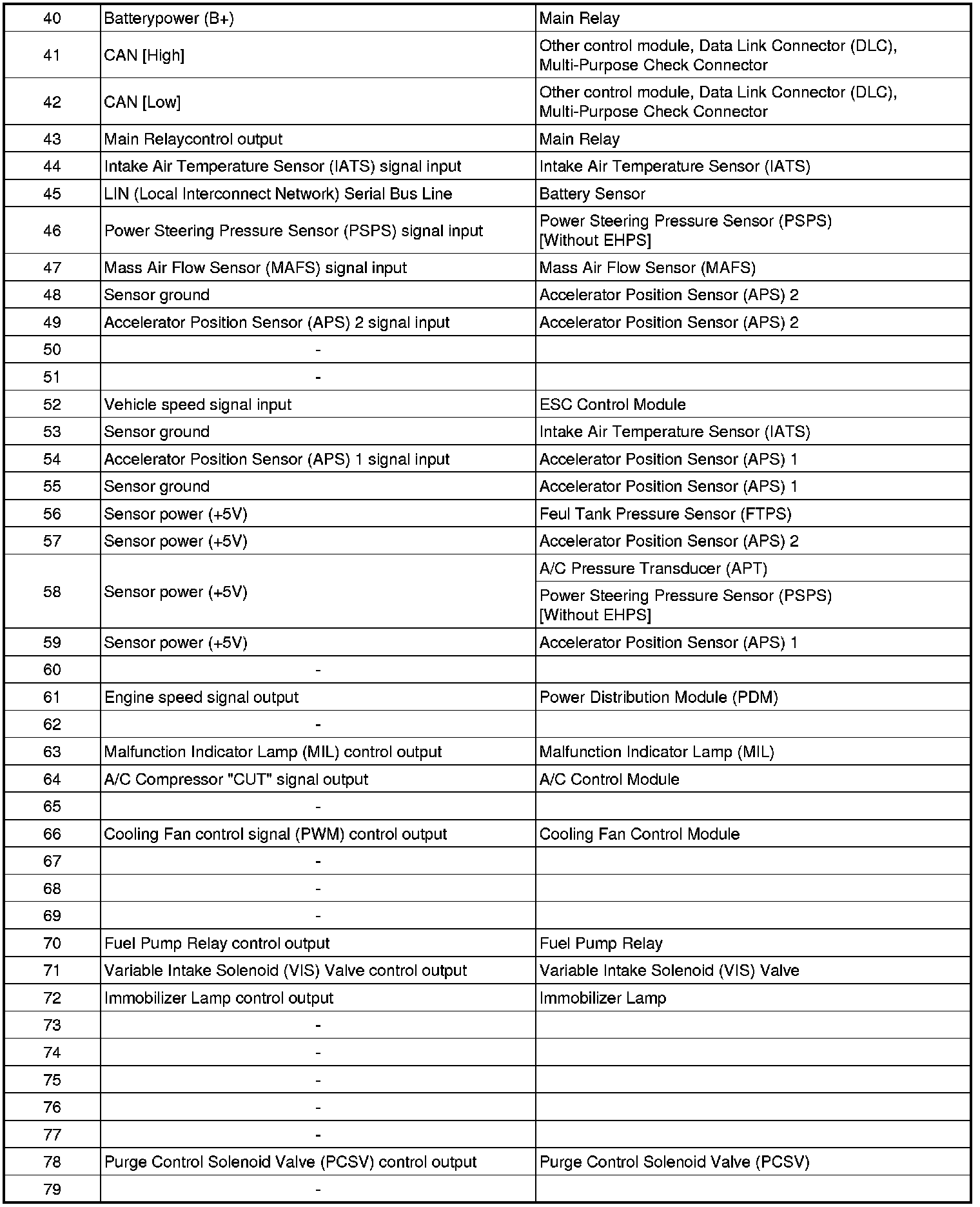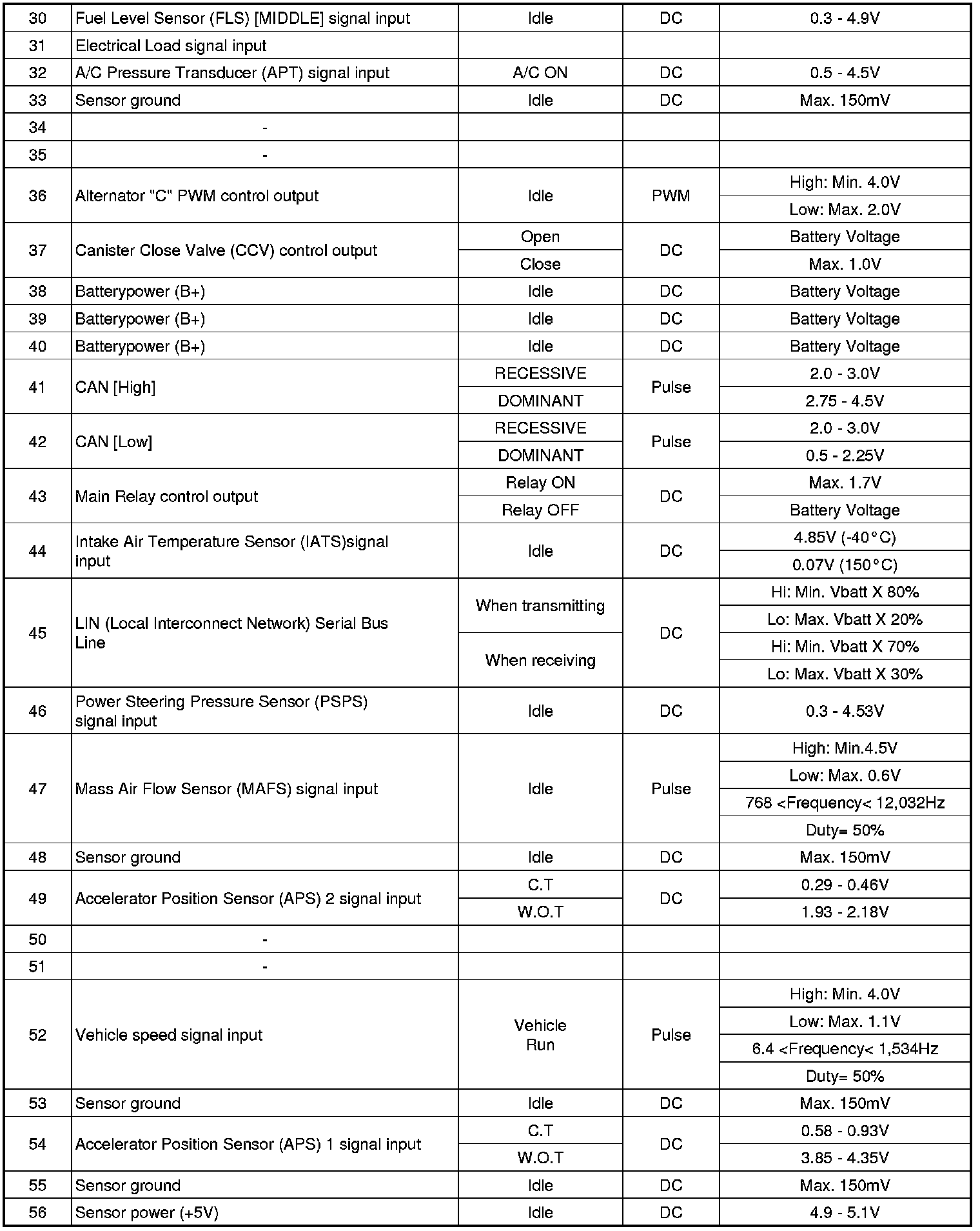 ECM Terminal Input/Output Signal