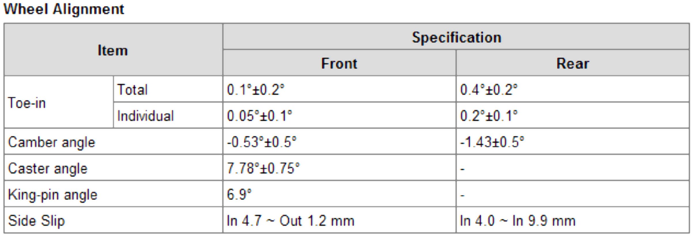 Wheel Alignment Specifications