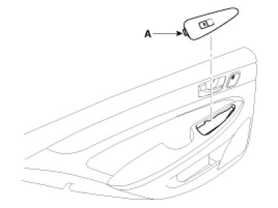 3. Remove the door module (ADM) (A) from the front door trim panel after disconnecting module connector.