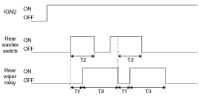 However, Rear Washer SW input generated during operating Rear Wiper RLY is ignored, and received following the operation of Rear Wiper RLY.