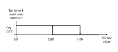 (5) In LIGHT ON state, in case of the AUTO LIGHT SENSOR value is the input value of the LIGHT OFF, LIGHT shall be OFF after 12 ± 0.2sec.