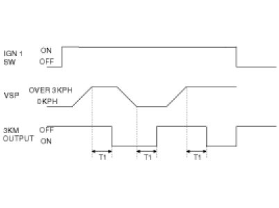 If the vehicle speed is maintained at more than 3km/h for 2 - 3 seconds in the IGN1 ON state, the signal of 3 KM Output-port shall be ON.