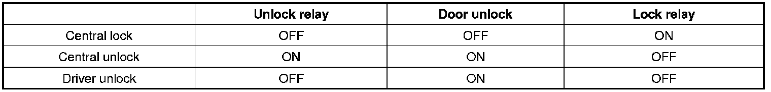 (10) In the KEY IN Switch is IN state, if the assist's DOOR UNLOCK Switch is turned to the LOCK from the UNLOCK within 0.5 seconds as soon as the assist's door is turned to the closed state from the opened state, then the Unlock signal shall be output to all doors for 1 second one time.