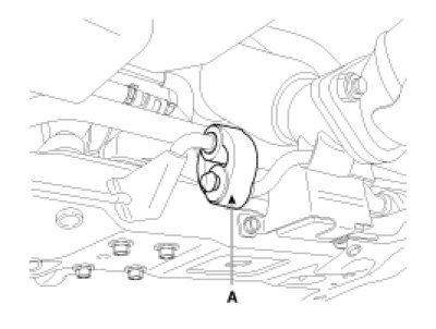 2. Loosen the bolt (A) and then disconnect the universal joint assembly from the pinion of the steering gear box.
