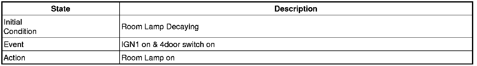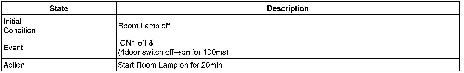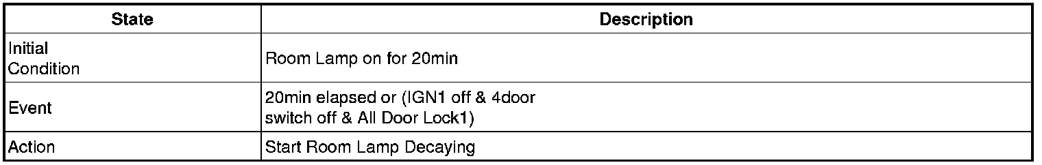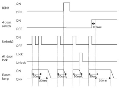 - 4 Door in closed IGN1 off & (Key in -> Key out): 30-second delay will be lights out.